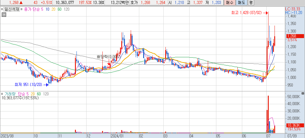 일신석재는 석산개발, 광산개발 및 건축석재 가공 및 판매 등의 사업을 하고 있는데 대표적인 남북경협주로 꼽힌다.