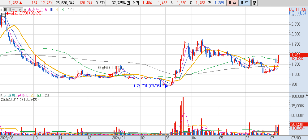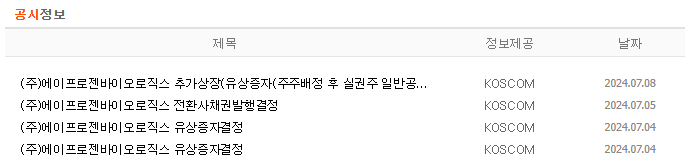 앞서 에이프로젠바이오로직스은 총 1천억원 규모 자금조달 소식에 5일 장 개시 후 상한가로 직행했다.