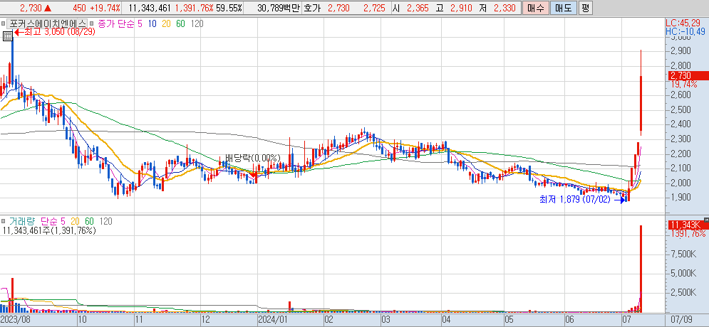 포커스에이치엔에스 주가가 시간외 매매에스 급등했다.
