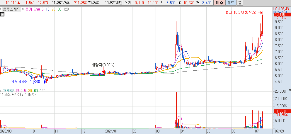 옵투스제약, 주가 급락…최대주주 비만치료제 기대감에 급등락