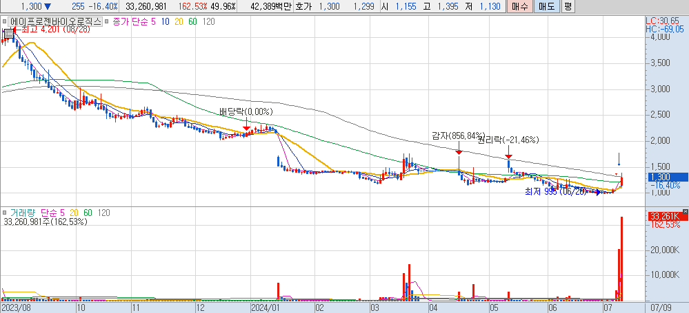 에이프로젠바이오로직스 주가가 유상증자 소식에 천당과 지옥을 오가며 롤러코스터를 타고 있다.