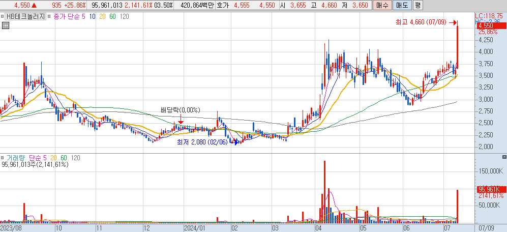 최근 이러한 호재 소식으로 기술적 분석상 주요 저항대로 작용할 수 있는 200일 이동평균선도 돌파하면서 상승 흐름 이어나가고 있다.